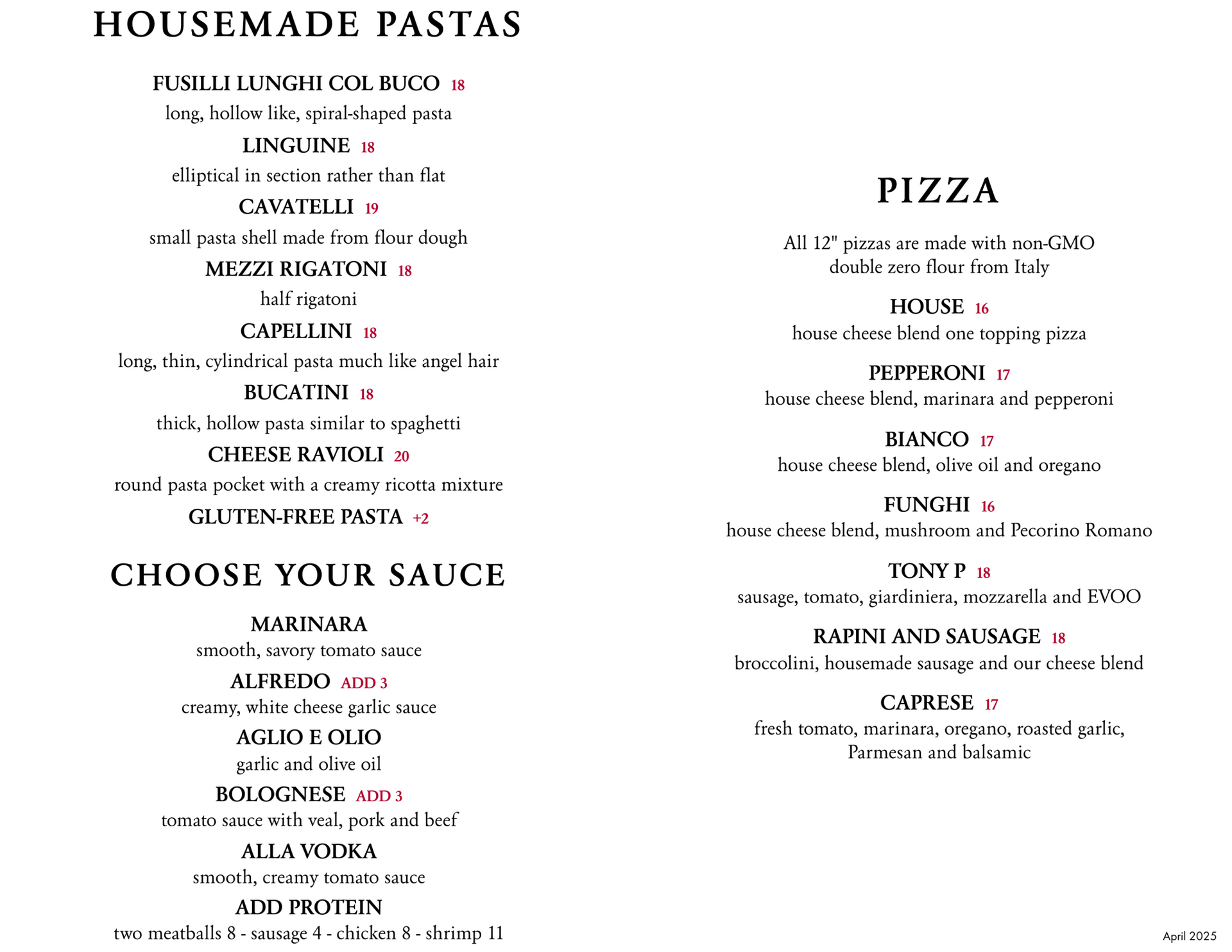 Carry Out Menu