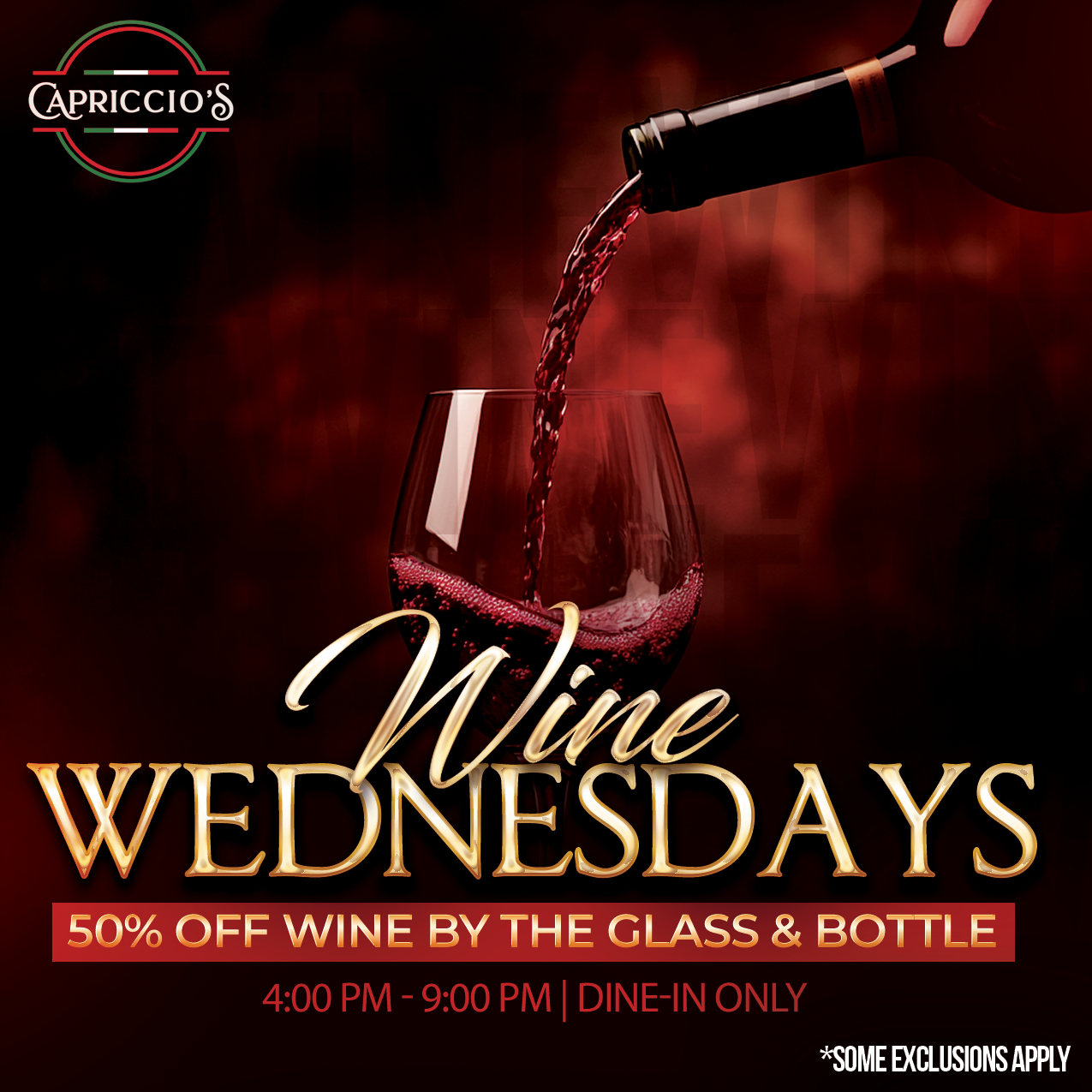 - While supplies last. Capriccio’s reserves the right to modify or cancel this promotion at any time without notice.